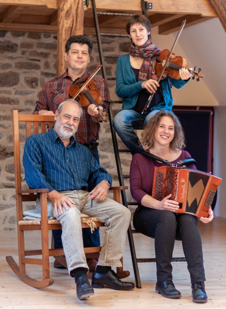 Emmanuelle Bouthillier : violon, podorythmie, chant ; Robert Bouthillier : guimbardes, chant ; Nadège Queuniet : accordéon diatonique, chant ; Etienne Lagrange : violon, chant