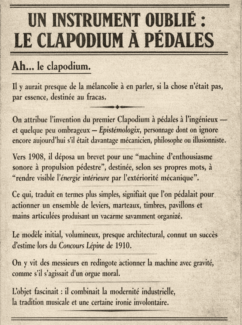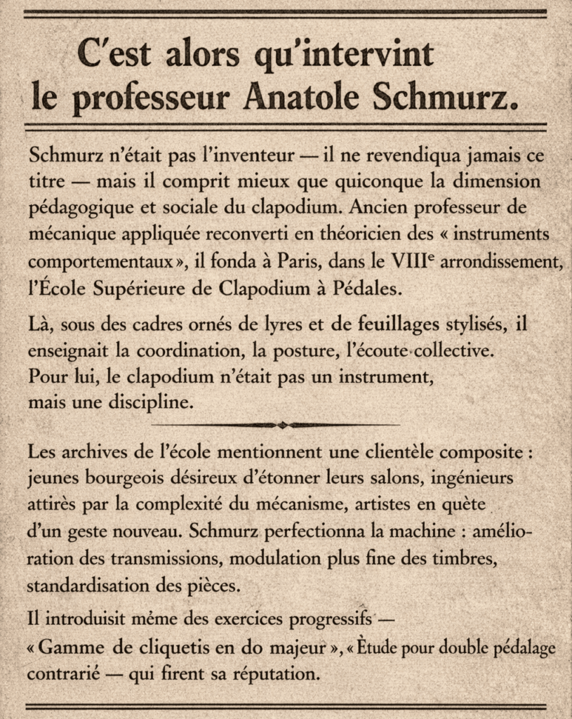 Un instrument oublié : le clapodium à pédales